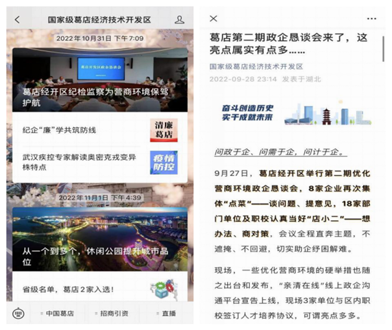 发挥政府门户网站第一平台作用,优化主动公开目录,新建专题专栏6个,建设“政企亲清”平台、政策解读问答知识库和基层政务公开“两化”专题页面,集成发布20个重点领域信息。加强政务新媒体建设,全年通过“国家级葛店经济技术开发区”微信公众号同步发布政务动态、回应关切等信息1252条。将门户网站和政务新媒体全部纳入省级备案管理,多次开展涉及个人隐私信息、无效链接、错敏字排查整改工作,着力提高信息发布质量和网络意识形态。