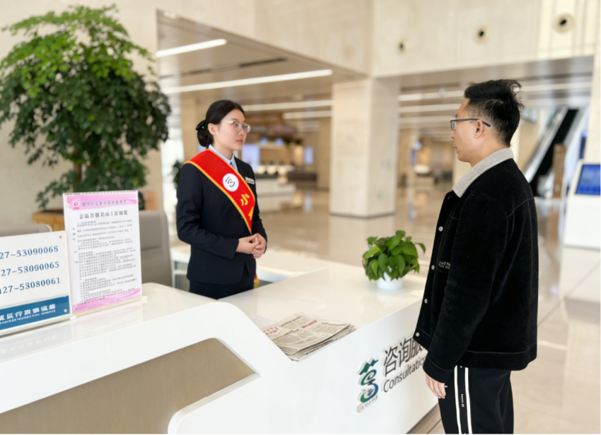 湖北日报通讯端讯(通讯员 涂梦茹)“你好,我年纪大了不会用智能手机,养老金认证可咋整?”“企业新办需要哪些材料,流程复杂吗?”在葛店国家经开区政务服务中心,身披“小葛来帮您”鲜红绶带的工作人员,已成为群众办事的“贴心向导”。这抹亮眼的“绶带红”,正以创新举措让政务服务从“来回跑”变“一次成”、从“被动等”变“主动办”,传递着浓浓的民生温度。