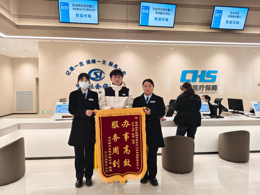 湖北日报客户端讯(通讯员 杜芬)近日,湖北瑞华光电有限公司负责人张先生一行来到葛店国家经开区政务服务中心,将一面印着“办事高效,服务周到”的锦旗,郑重送到社会民生区劳动就业综合窗口工作人员手中,以此表达对窗口优质高效服务的诚挚谢意。
