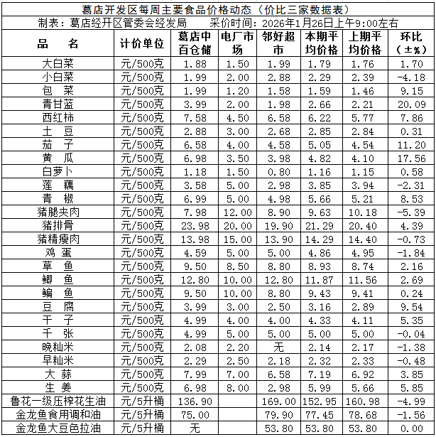 葛店开发区2026年1月26日价比三家