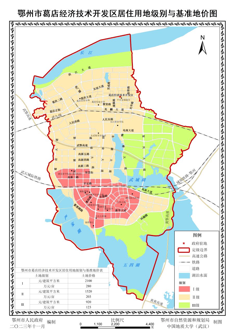 鄂州市葛店经济技术开发区居住用地级别与基准地价图