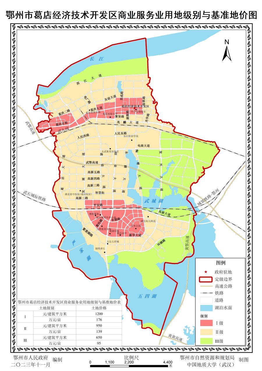 鄂州市葛店经济技术开发区商业服务业用地级别与基准地价图