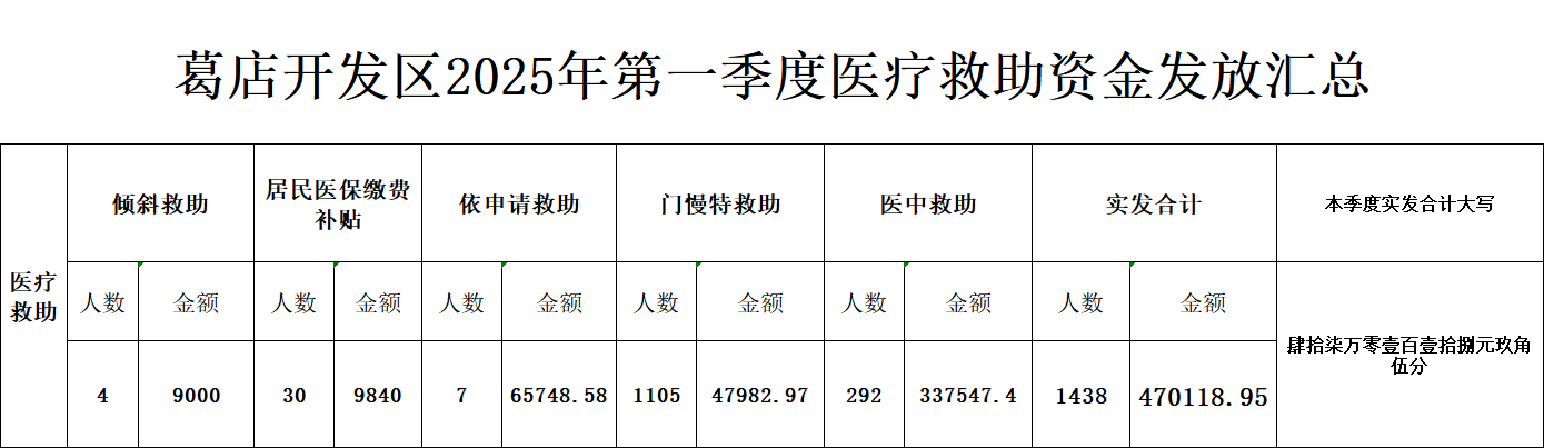 葛店开发区2025年第一季度医疗救助资金发放汇总