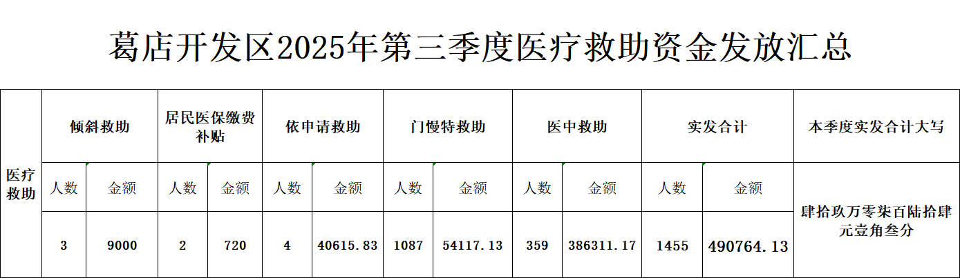 葛店开发区2025年第三季度医疗救助资金发放汇总