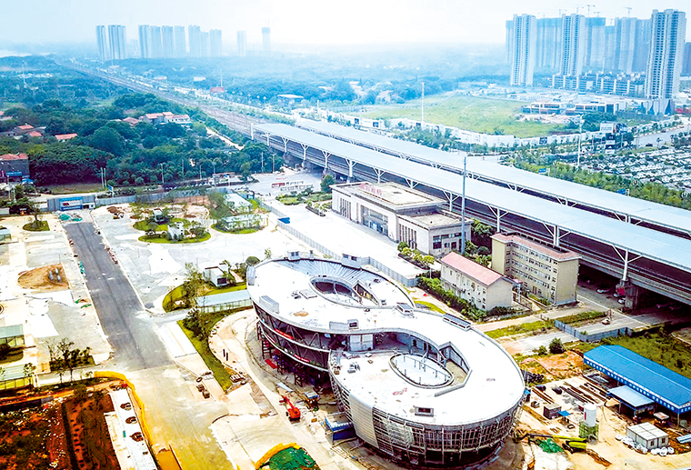 “项目完工后,将成为以葛店南站为核心的集高铁、客运、轨道交通于一体的综合交通枢纽,和双创谷城市广场、葛店南站共同打造连通地铁11号线葛店南站的地下停车及交通换乘空间,实现高效便捷的客流集散,填补葛店经开区大型城市综合交通枢纽空白。”中建三局葛店基础设施指挥部业务经理鄢良波介绍。