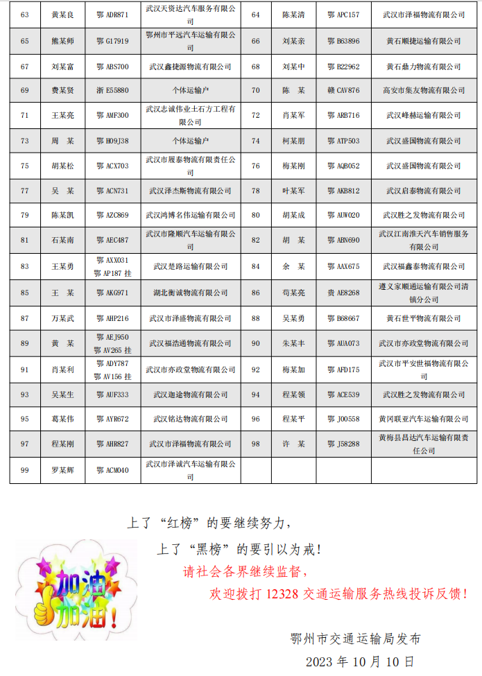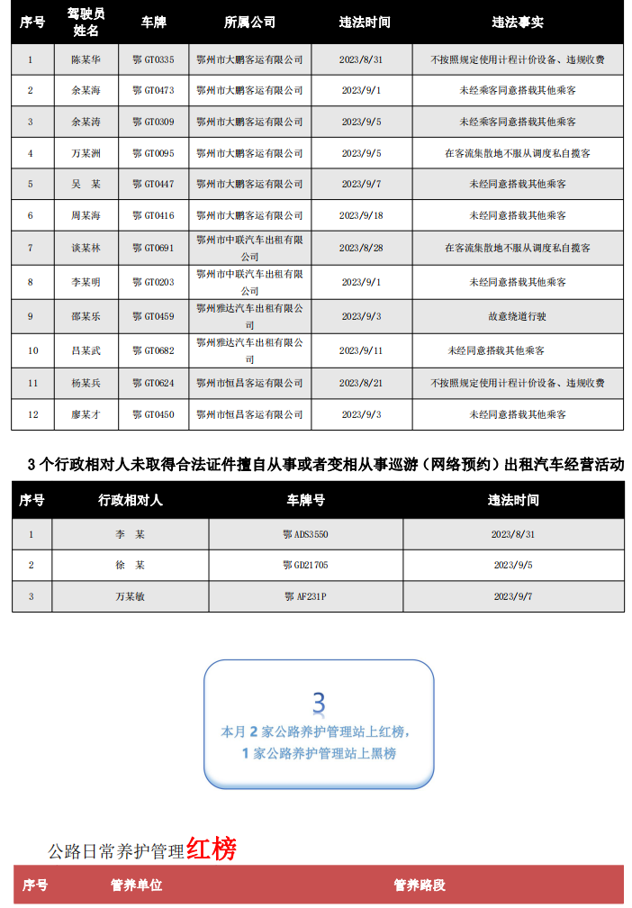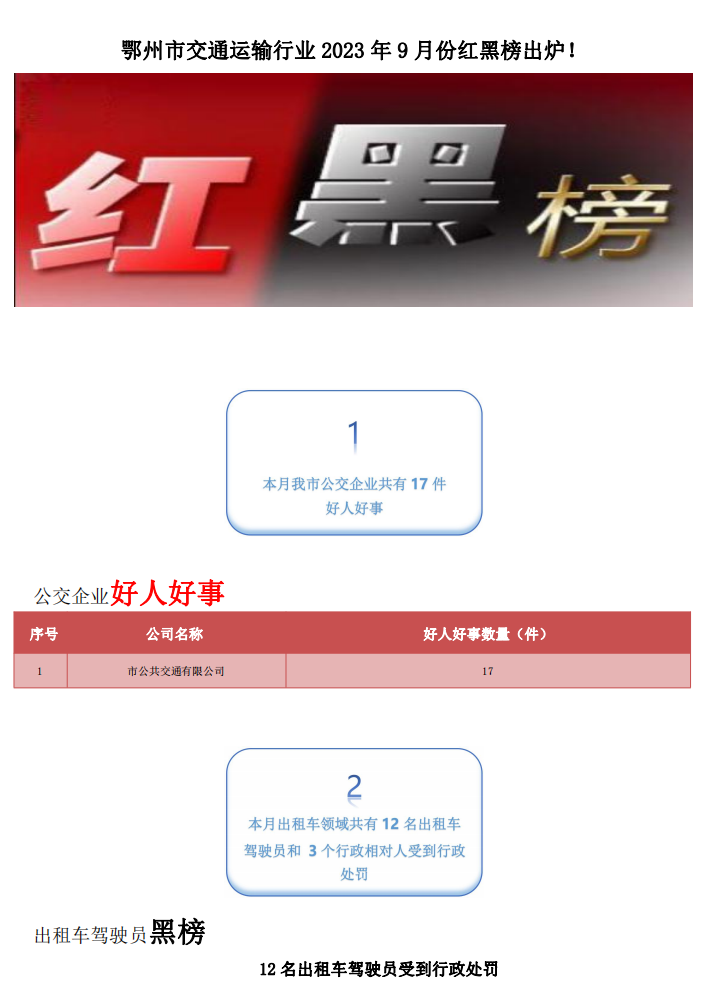 鄂州市交通运输行业2023年9月份红黑榜出炉!