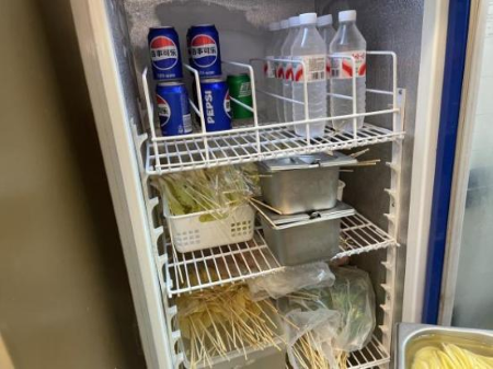 检查发现问题:1、进门口无三防设施。2、从业人员健康证未公示。3、厨房环境卫生差。4、冷藏冷冻(-18℃贮存)、易腐败变质的食品原料未按控制温度要求贮存。