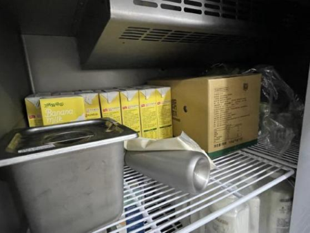 检查发现问题:冰箱存放食品原料未脱外包装箱。