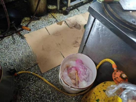 检查发现问题:1、灭蝇灯未正常使用。2、后厨下水与外界连通区域未加装挡鼠网。3、后厨垃圾桶未加盖。