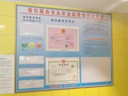 检查发现问题:从业人员健康证未公示。