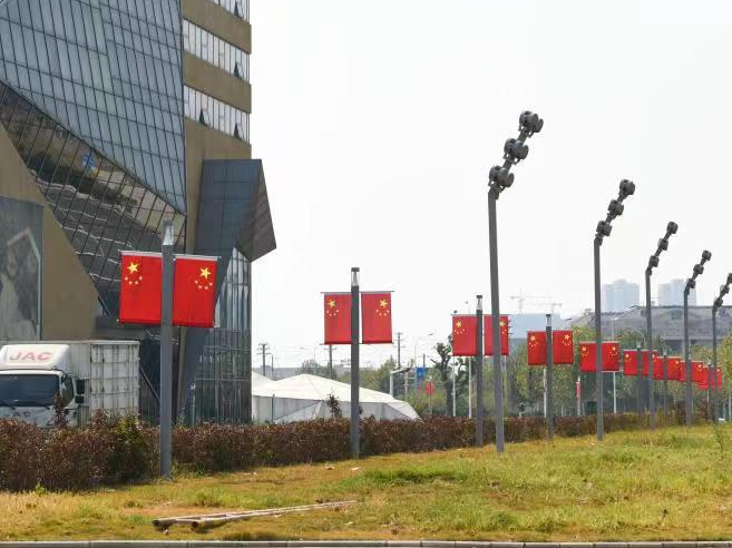 10月1日,葛店经开区满城飘扬起了“中国红”, 鲜艳的五星红旗,激发了市民的爱国热情。