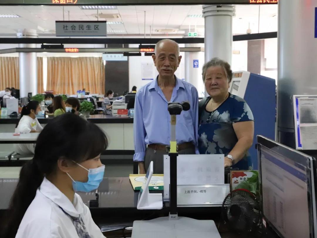 老两口拍照面签办证,留下开心的瞬间