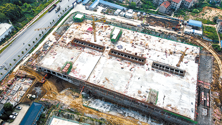 图为昨日航拍的建设中的葛华污水处理厂三期项目工程。