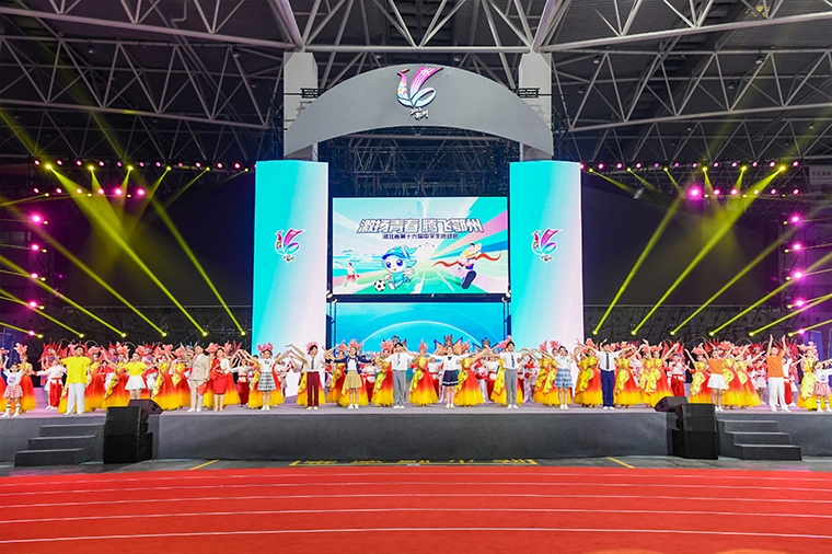 闭幕式上,还举行了主题为“强少年 勇奋进 展未来”的大型文体展演。在大合唱《歌唱祖国》中,省第十六届中学生运动会圆满闭幕。