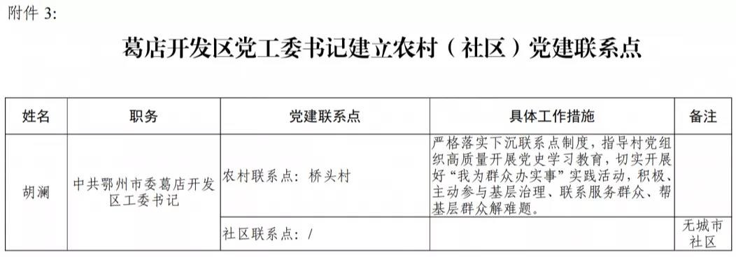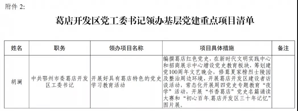 以下为附件2:葛店开发区党工委书记领办基层党建重点项目清单;附件3:葛店开发区党工委书记建立农村(社区)党建联系点