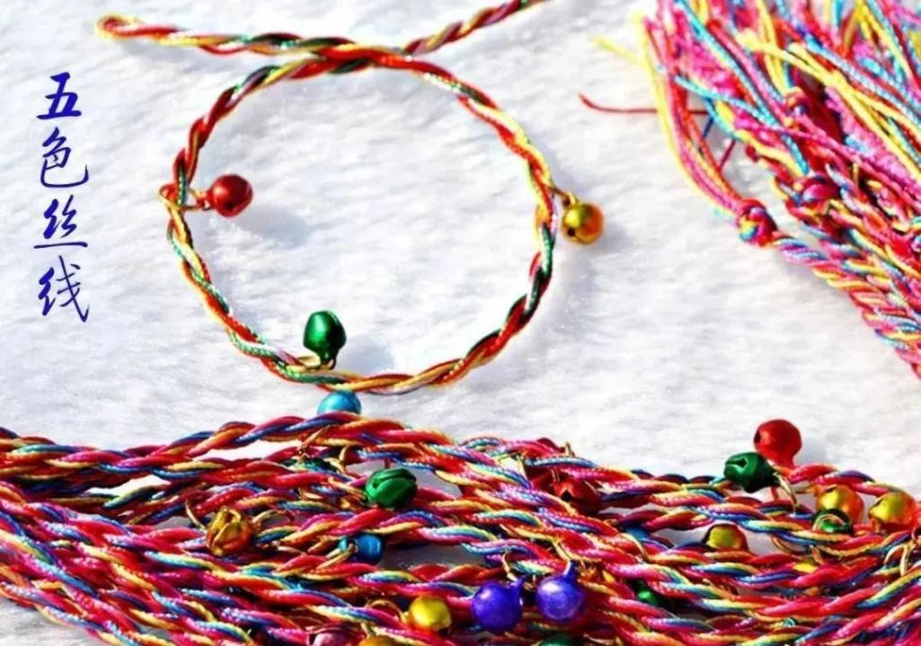 中国古代崇敬五色,以五色为吉祥色。因而,节日清晨,各家大人起床后第一件大事便是在孩子手腕、脚腕、脖子上拴五色线。系线时,禁忌儿童开口说话。五色线不可任意折断或丢弃,只能在夏季第一场大雨或第一次洗澡时,抛到河里。据说,戴五色线的儿童可以避开蛇蝎类毒虫的伤害;扔到河里,意味着让河水将瘟疫、疾病冲走,儿童由此可以保安康。也有的说可以让五色丝线扔到河里后变成龙,带走瘟疫和疾病。