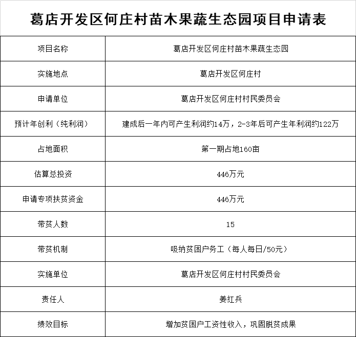 一、葛店开发区何庄村苗木果蔬生态园项目申请表